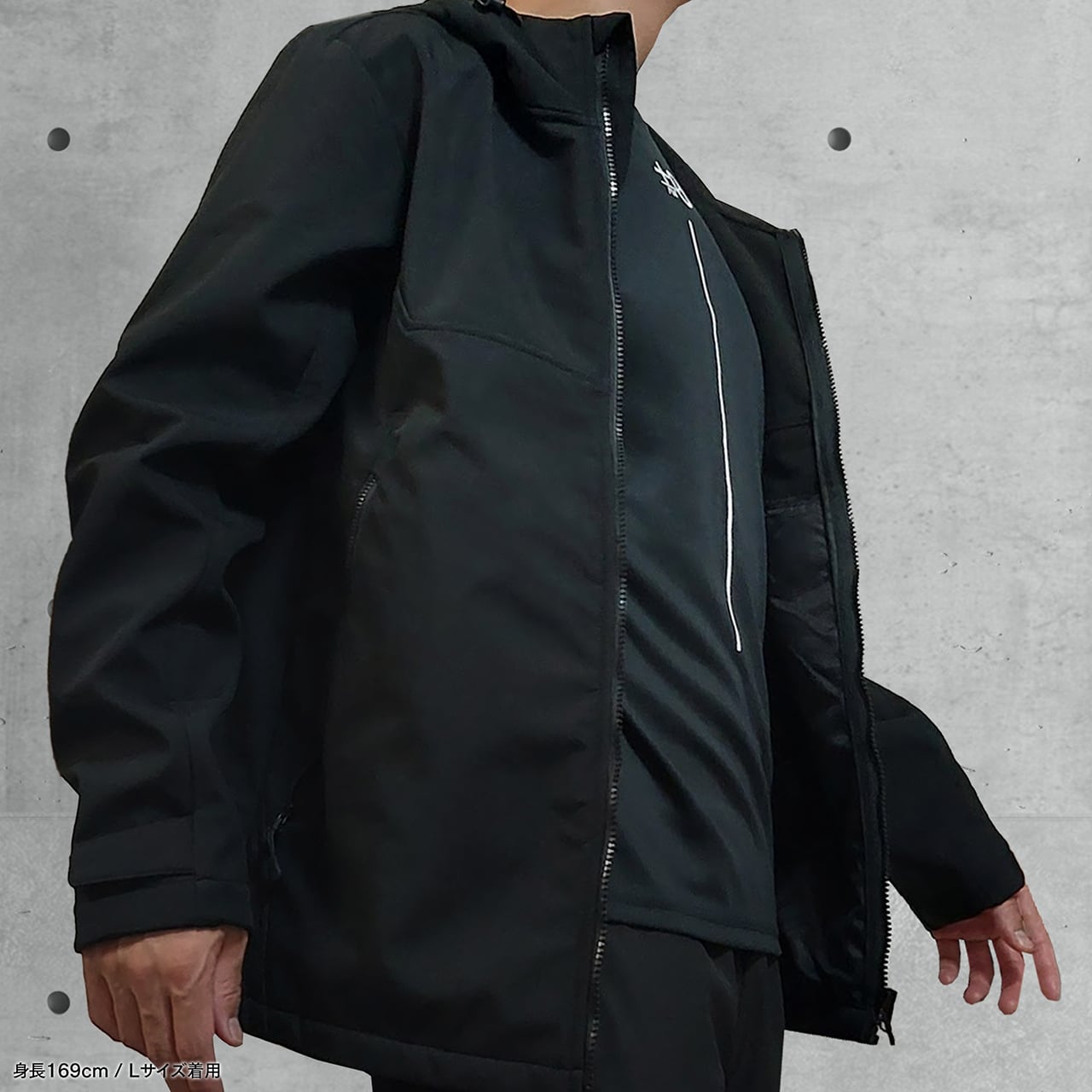フロントには+0AY STYLEワッペン、高機能でスタイリッシュな防風裏フリースパーカー。撥水加工がされているので雨の日でも安心。コーディネートしやすいシンプルでベーシックなデザインで秋冬の防寒着としてスポーツシーン、アウトドア、普段着などさまざまなシーンでフィットするアイテムです。スポーティな若干細身のシルエットですので、普段よりワンサイズ大きめがおすすめです。写真のモデルは身長170cm、体重64kgの方でLサイズを着用しております。