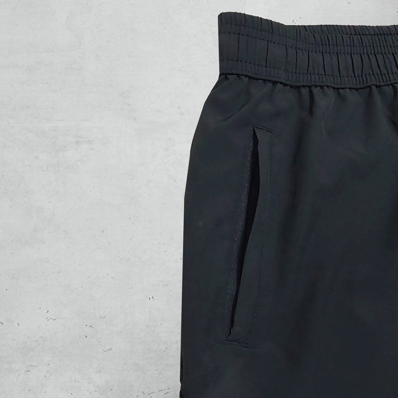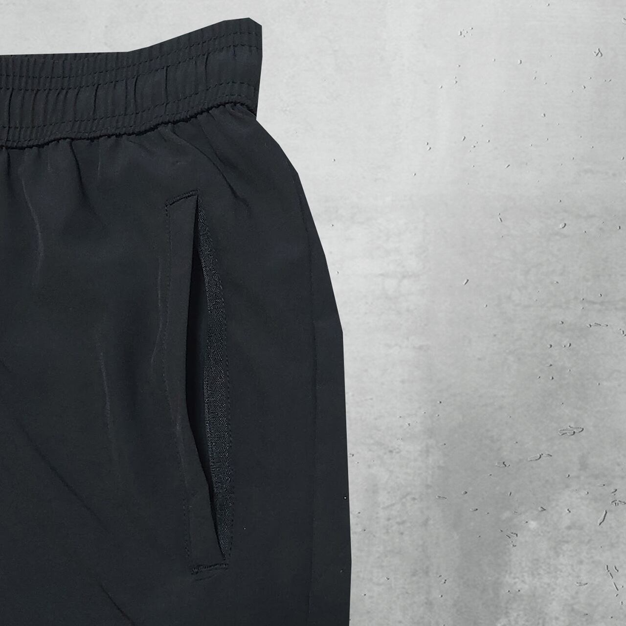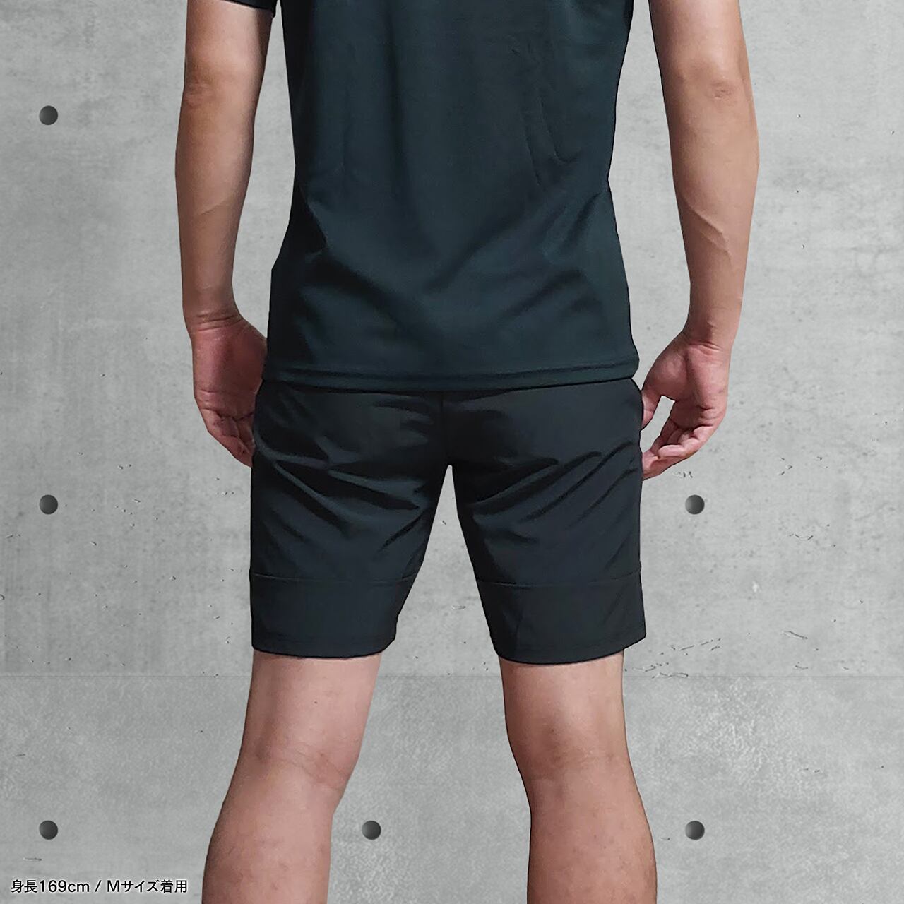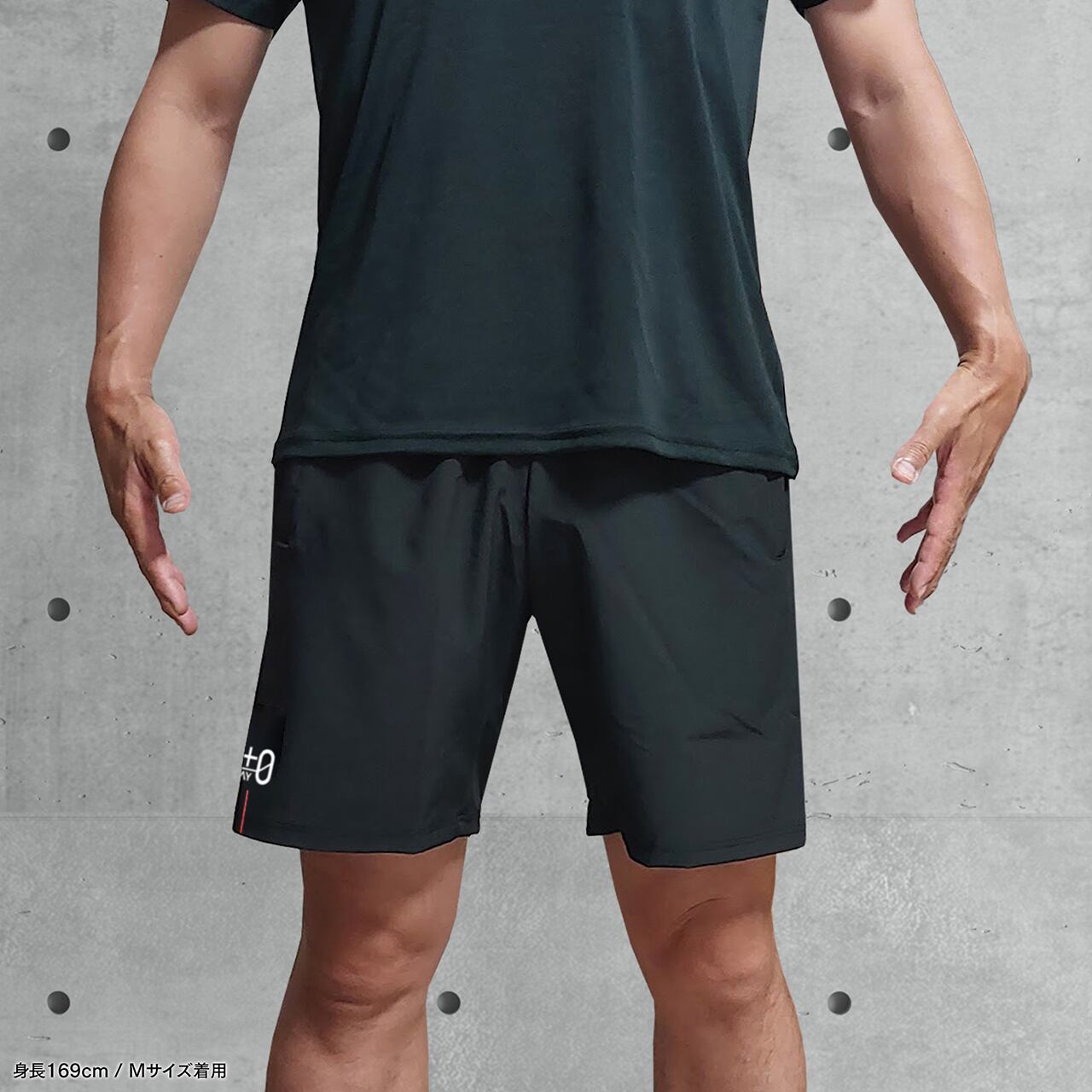 コーディネートしやすい+0AYワンポイントロゴとレッドラインがデザインされたの両脇ポケット付きベーシックなドライハーフパンツ。吸水速乾で肌触りが良く、適度なストレッチで快適なフィット感。薄手ながらも耐久性のある1枚です。