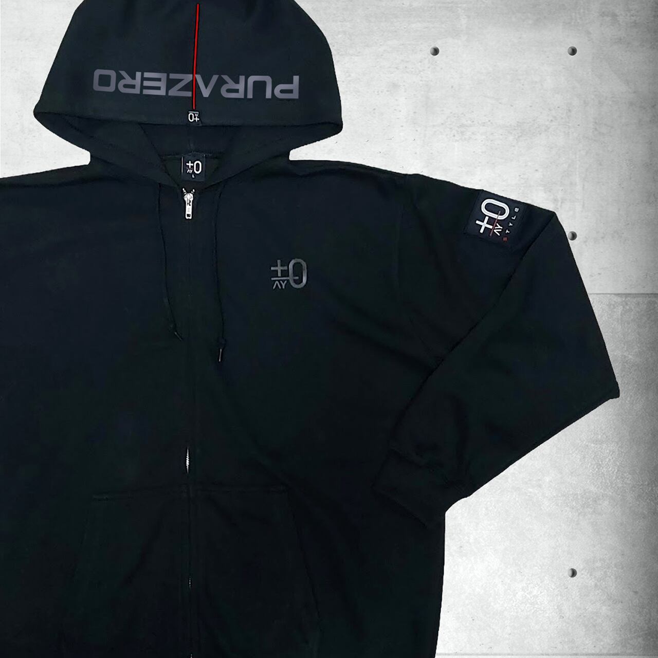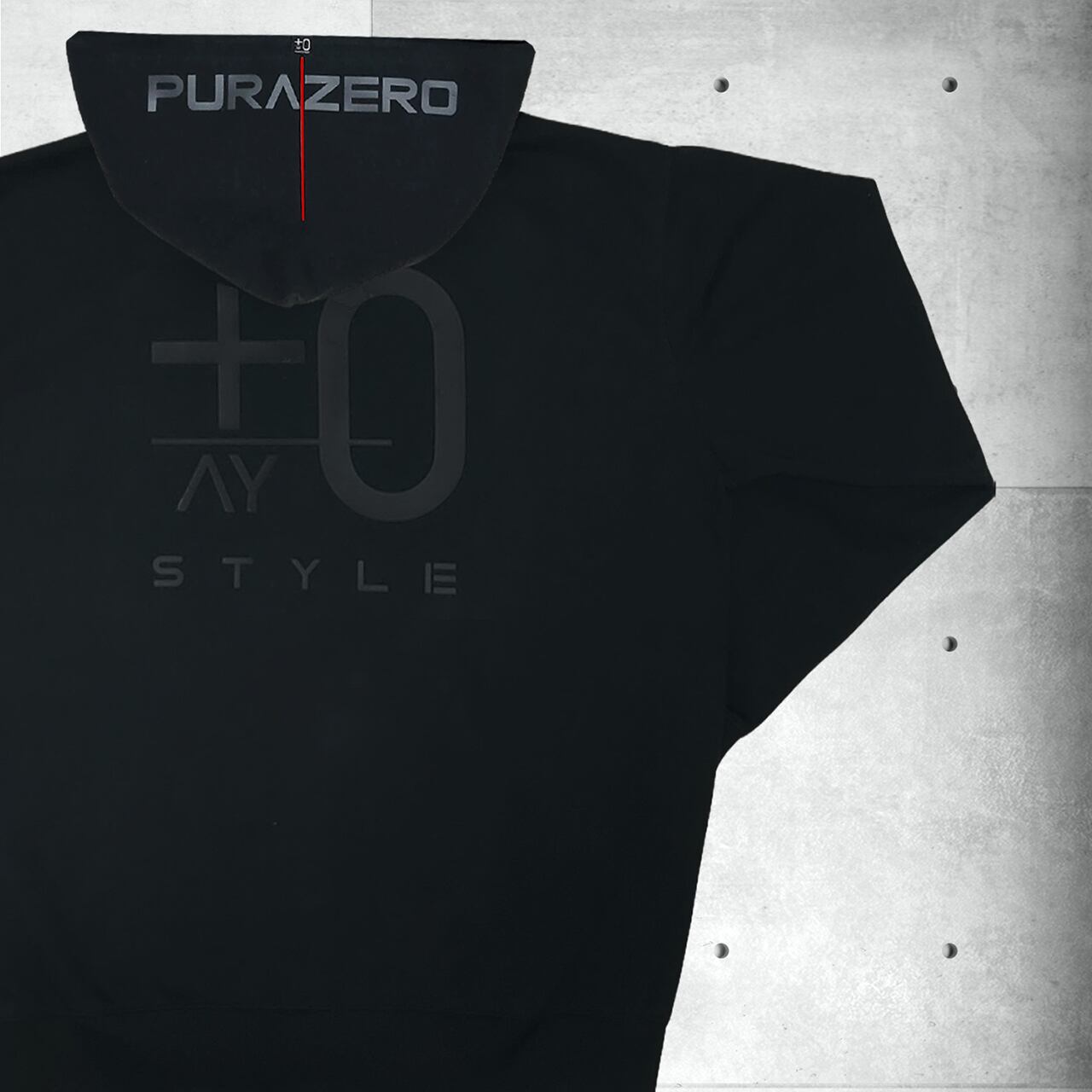 シンプルスタイリッシュにBLACK✕BLACKを着こなすBBシリーズ。フロントにロゴ、バックに+0AY STYLEを黒でデザインしたフード付きジップフーディ。T/C素材なので軽量で型崩れしにくく、サラッとした肌触りの良い、通気性、速乾性を兼ね備えた春〜秋におすすめの素材。ゆったりした上質なカジュアル感素材なので大人な着こなしができるアイテムです。