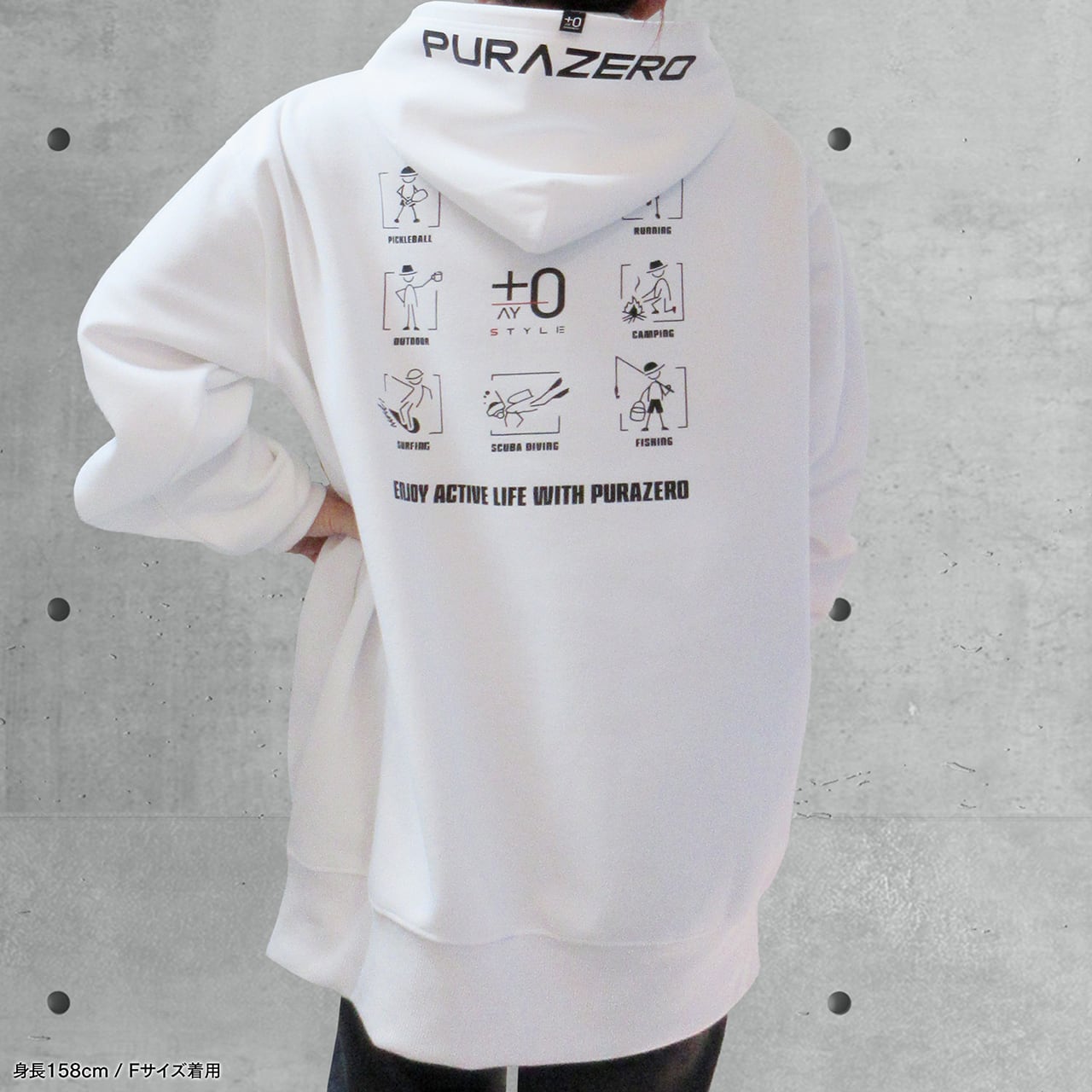 バックにJOY君のアクティブライフシーンをスクエアグラフィックでポップに、細部にこだわったデザインのビッグパーカー。T/C素材なので軽量で型崩れしにくく、サラッとした肌触りの良い、通気性、速乾性を兼ね備えた春〜秋におすすめの上質な素材。女性に大人気!オーバーサイズをゆるっと着こなす人気アイテム。