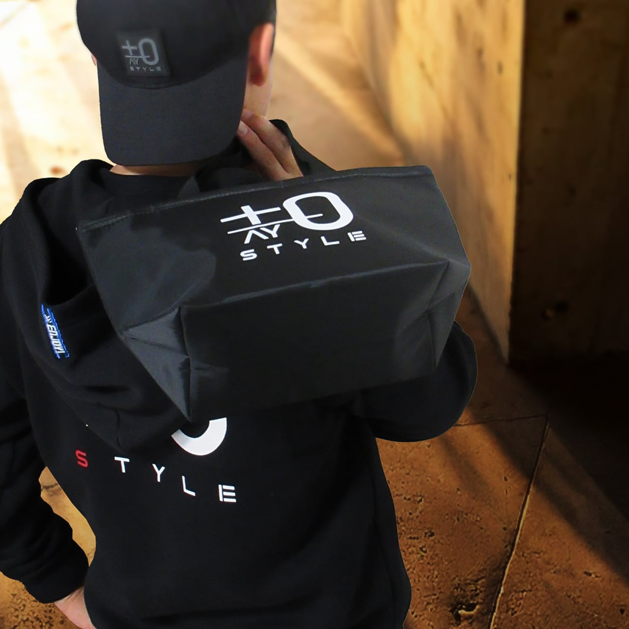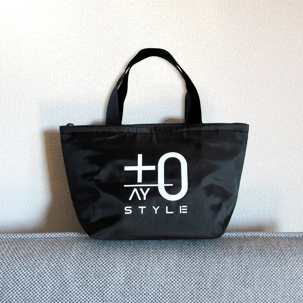 +0AY STYLEロゴ入りの薄手のポリエステル素材を使用した、シンプルな保冷トートバッグ。内側はアルミ蒸着フィルムとなっており、350mlの缶が6本並べて入るサイズ感で、行楽先への保冷バッグとしてはもちろん、ランチトートとしてもおすすめです。